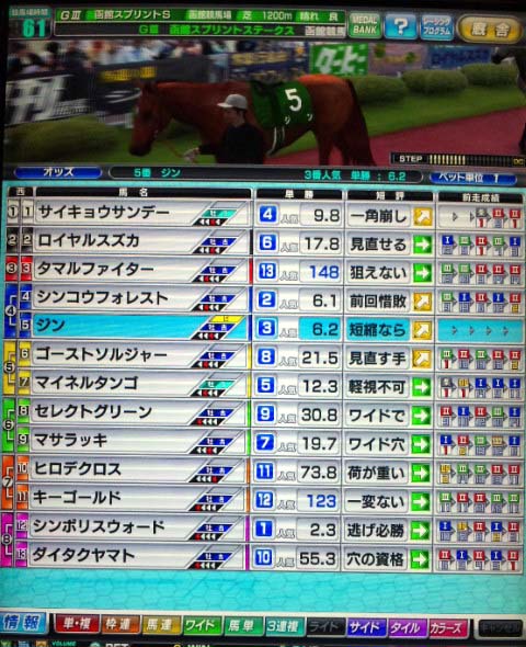 まず、鍵はカラーズです。カラーズで3連単があたるとステップ数が5~10ステップ上がりますのでこの効果は絶大ですね~カラーズ3連複で1~3ステップ、また、単勝、複賞、ワイド、馬単、馬連でも1~3ステップ上がりますので狙って行きましょう!